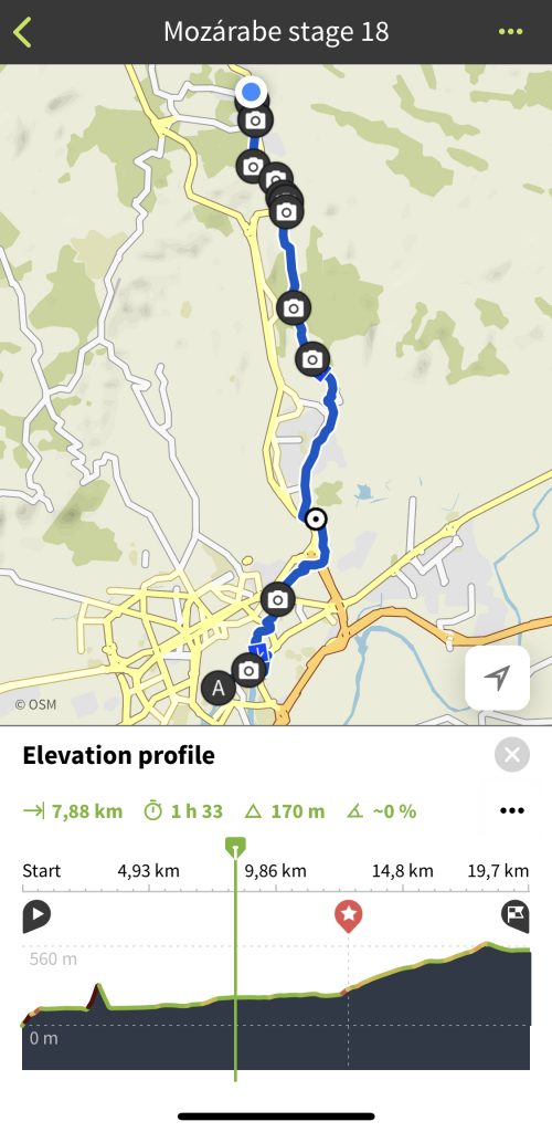 Er zou een Albergue zijn van twee Nederlandse mensen. Een privé Albergue dus, met flink wat buitenruimte, veel kamers en een zwembad. Maar hoe vaak ik ook bel, er wordt maar niet opgenomen. Als we rond twee uur in het dorpje zijn lunchen we ergens en vragen waar die Albergue is. We krijgen te horen dat die mensen hun biezen gepakt hebben en gaan op zoek naar iets anders. Dat is gelukkig maar een paar 100 m verderop, en een prima plek. Het is boven een bar, dus ik zit nu heerlijk in de zon op het terras mijn blog te schrijven met een Fanta Limón. Nauwelijks last van de voeten ben ik blij gekozen te hebben voor de wat kortere etappe van vandaag, en de rust dag van gisteren. Het dorp is overigens prima voor pelgrims, overal staan informatieborden en ook het Hostal is er op ingericht. Stef heeft zelfs een echte pelgrim kamer met allerlei posters van deze Camino Mozárabe. Mijn kamer niet, maar deze is wel groter 😋.