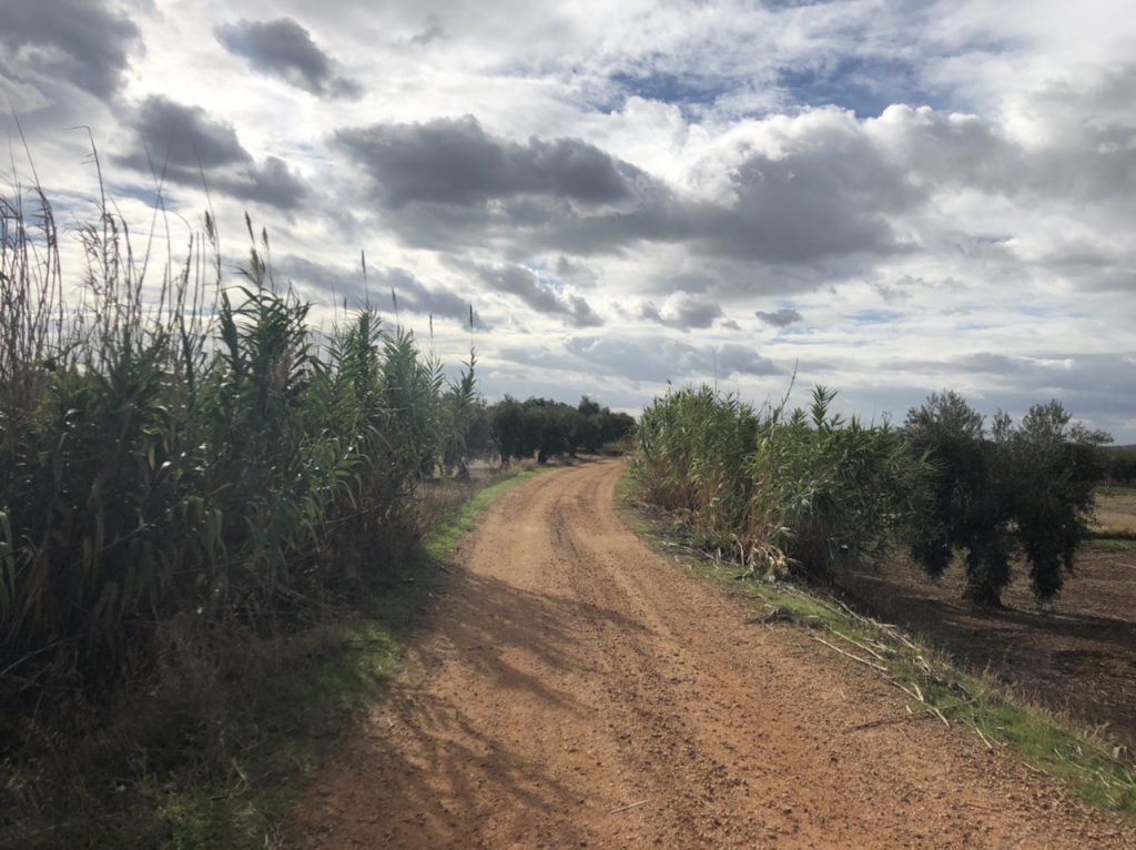 Het is net na de middag als ik dit schrijf, in een Hostal-restaurant in San Pedro de Mérida. Ik heb een enorm pijnlijk scheenbeen, ik weet dat mannen vaak overdrijven maar het is écht pijnlijk. Ik baal er van. Maar eerst even terug naar vanmorgen. Nog voor 07:00 uur trek ik de deur achter me dicht, de mist waait door de straten. Na koffie en een pan tostada met jam ga ik een half uur later onderweg. Een rustige verharde weg en een zandweg tekenen de eerste 4 kilometer. Mooi is de ochtend wederom!