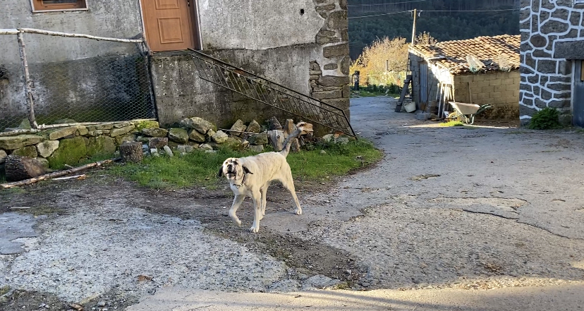 In het allereerste dorpje wat ik tegen kom, word ik meteen welkom geheten door deze enorme blaffende hond. Welkom in Galicië 😅