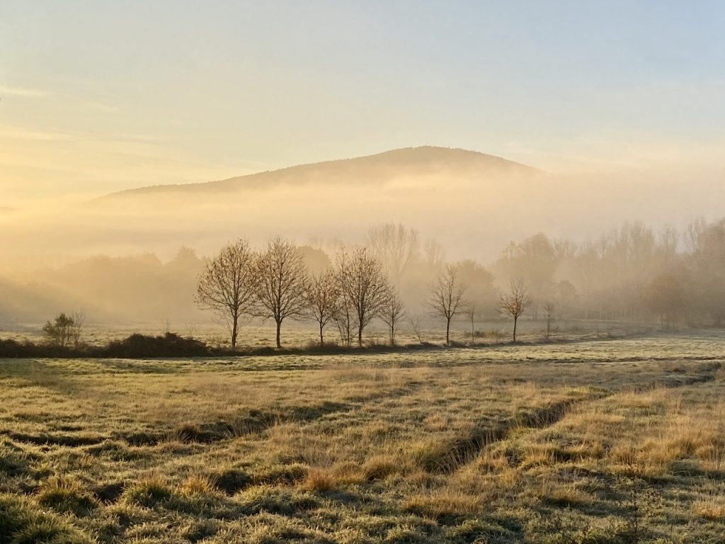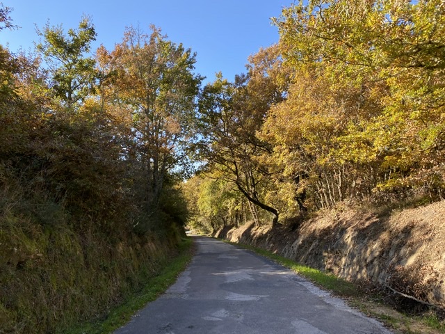 Na een stuk verharde weg zonder verkeer gaat de etappe vlak en niet vervelend van start de eerste 7 km. Ik nam afscheid van Lee in de albergue en kom hem wederom ergens tegen op dit stuk. En weer zwaaien we elkaar uit. Er begint een klim waar werkelijk geen eind aan komt. Twee dagen terug was een pittige maar deze mag ook in het boekje. Warm was het in de ochtendzon, weer eens wat anders dan de vorst afgelopen ochtenden. Toch hou ik hier van, dat bikkelen en klimmen houdt ook in dat je vergezichten hebt en ongelooflijk maar waar, ook daar hou ik van!